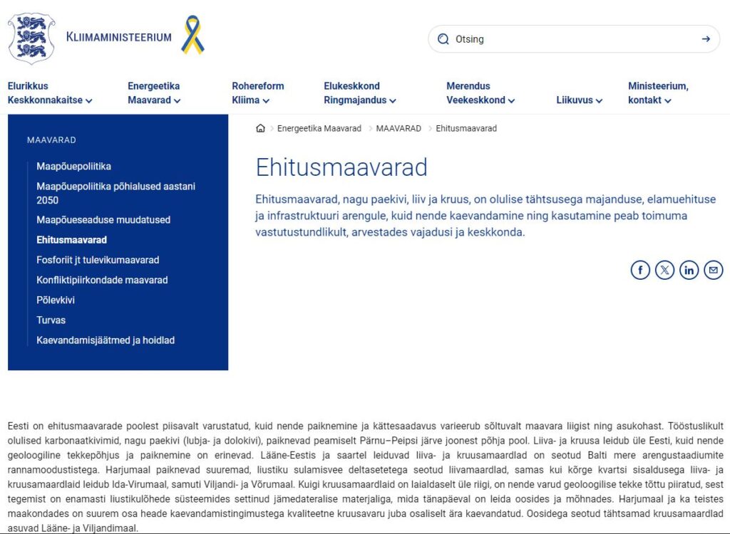 Kliimaministeerium on avaldanud uuendatud ülevaate Eesti ehitusmaavarade varustuskindlusest, mis annab maakondade lõikes teavet maavarade keskmise nõudluse, kaevandatavate varude mahu ja varude piisavuse kohta. Ülevaate eesmärk on tagada ajakohane info, mis võimaldab paremini planeerida maavarade uurimist ja kaevandamist. Üldine varustuskindlus on hinnatud rahuldavaks, kuid mitmes piirkonnas esineb puudujääke, mis vajavad lahendamist. Eriti kriitiline on olukord kõrgekvaliteetse […]
